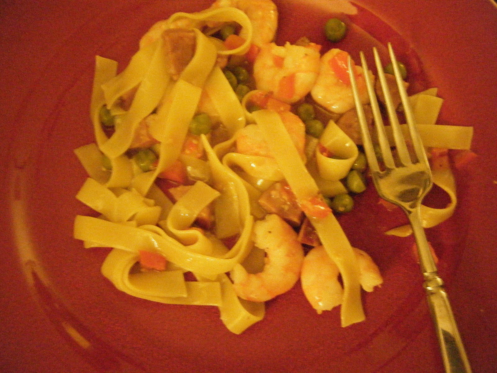 Note: For my version, cook pasta. Before you drain the pasta, reserve some pasta water. Put it and cooked pasta in pan. Add faux paella, toss, and serve.